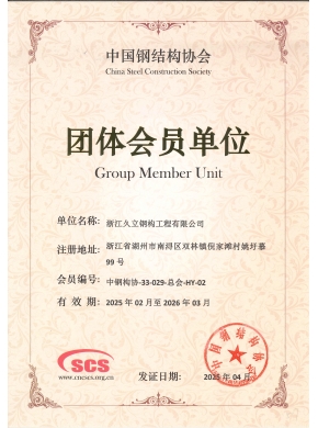 Zhejiang Jiuli Steel Structure Engineering Co., Ltd., founded in February 2001, is based in Huzhou City, the core area of the booming economy of the Yangtze River Delta in China. As a wholly-owned subsidiary of Jiuli Group, our company has not only been awarded honors such as Contract-abiding and Credit-worthy Unit, High-tech Enterprise, and AAA Credit Enterprise in Huzhou City but also holds important memberships in the China Steel Structure Association and the Steel Structure Branch of the Zhejiang Construction Industry Association, demonstrating our authoritative position and outstanding influence in the industry.